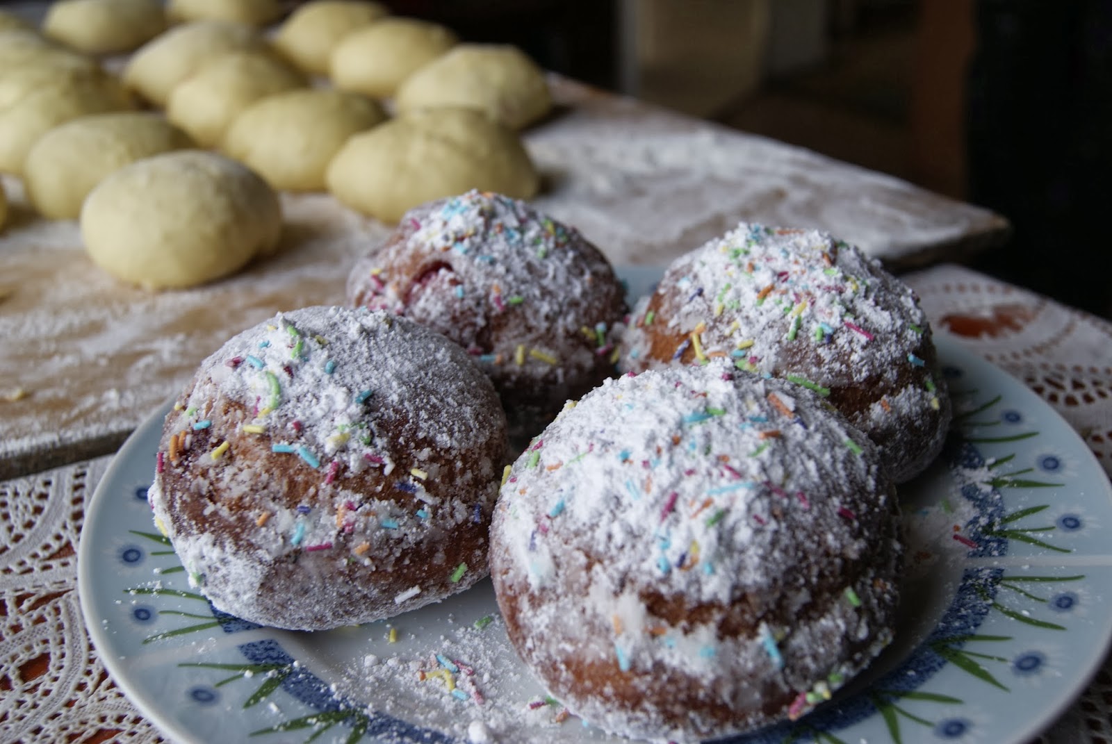 Pączki, niezwykle tuczące drożdżowe bułeczki. Warte zjedzenia kiedy są domowe. Te poniżej to domowy specjał mojej mamy, powtarzany przez nią co roku i zawsze udany. Pączki maja wzięcie i znikają niesamowicie szybko, a ja podaje przepis dalej bo szkoda by marnował się nie próbowany przez większe grono 🙂