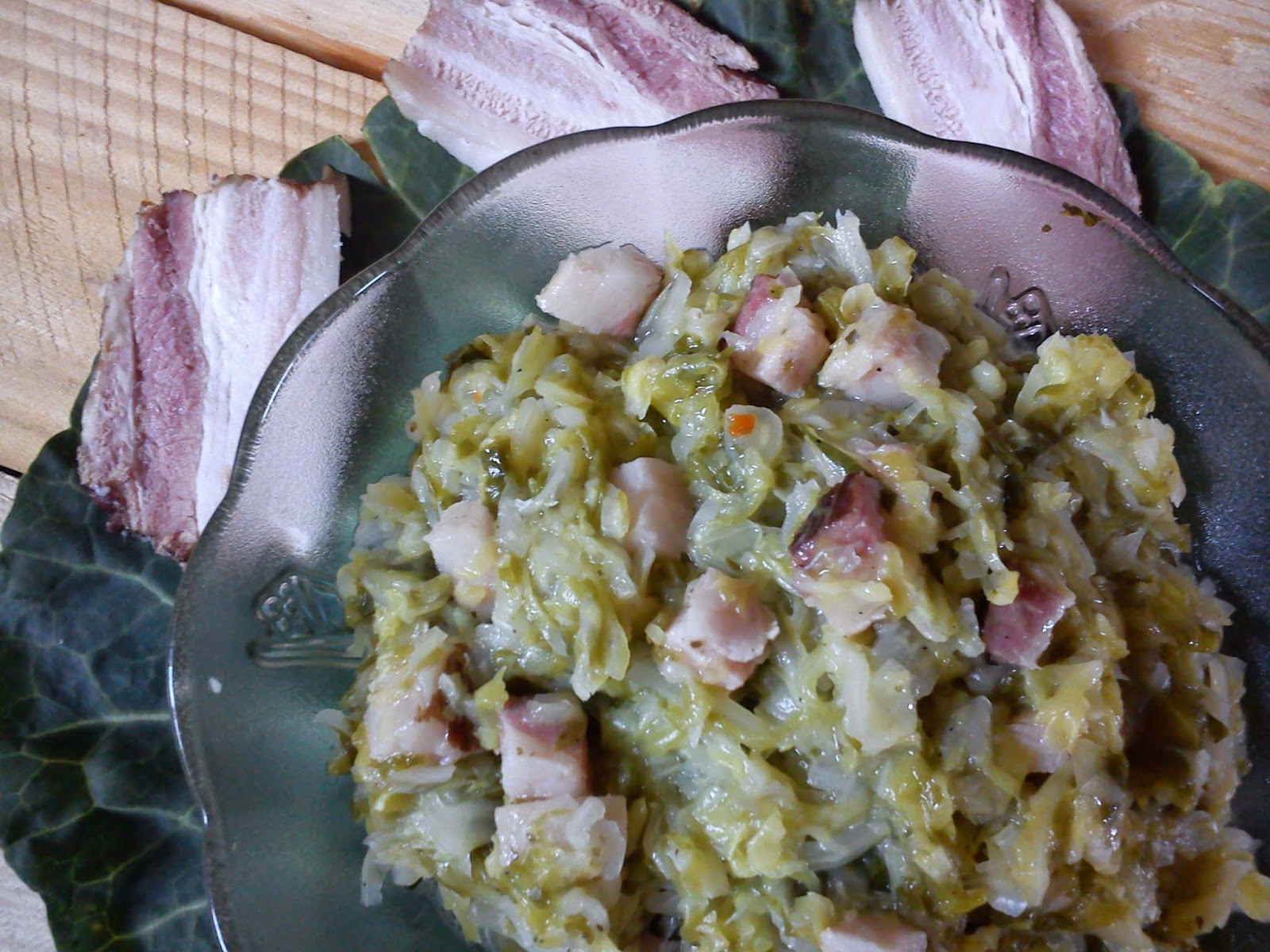 Sezon letni niesie ze sobą zawsze sporo nowalijek, które ja bardzo chętnie przemycam co obiadów. Nie koniecznie są one bardzo dietetycznie wykonane, ponieważ na przykład młoda kapustę lubię na owędzanym boczku. Boczek nadaje jej ciekawego aromatu, a całość nie jest jałowa. Taka kapusta sprawdzi się dobrze jako dodatek do obiadu bezmięsnego jak na przykład do jajka sadzonego i młodych ziemniaków z koperkiem.