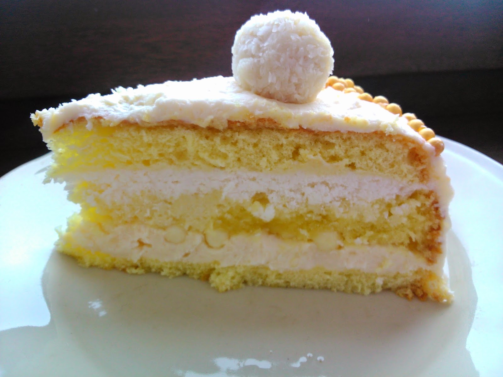 Pierwszą, tę która będzie od spodu – skropić sokiem wyciśniętym z cytryny, wyłożyć na nią połowę kremu budyniowego i posypać obficie białymi drażami. Położyć na to drugą warstwę. Skropić rumem bądź aromatem rumowym. Wyłożyć drugi kokosowy krem. Położyć trzecią – wierzchnią warstwę. Cały tort obsmarować dokładnie drugą połową kremu budyniowego, ozdobić kuleczkami i pralinkami 🙂