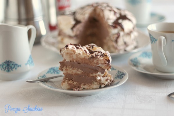 Blaty bezowe przełożyć kremem, polać polewą i podawać schłodzone – do pysznej kawy!